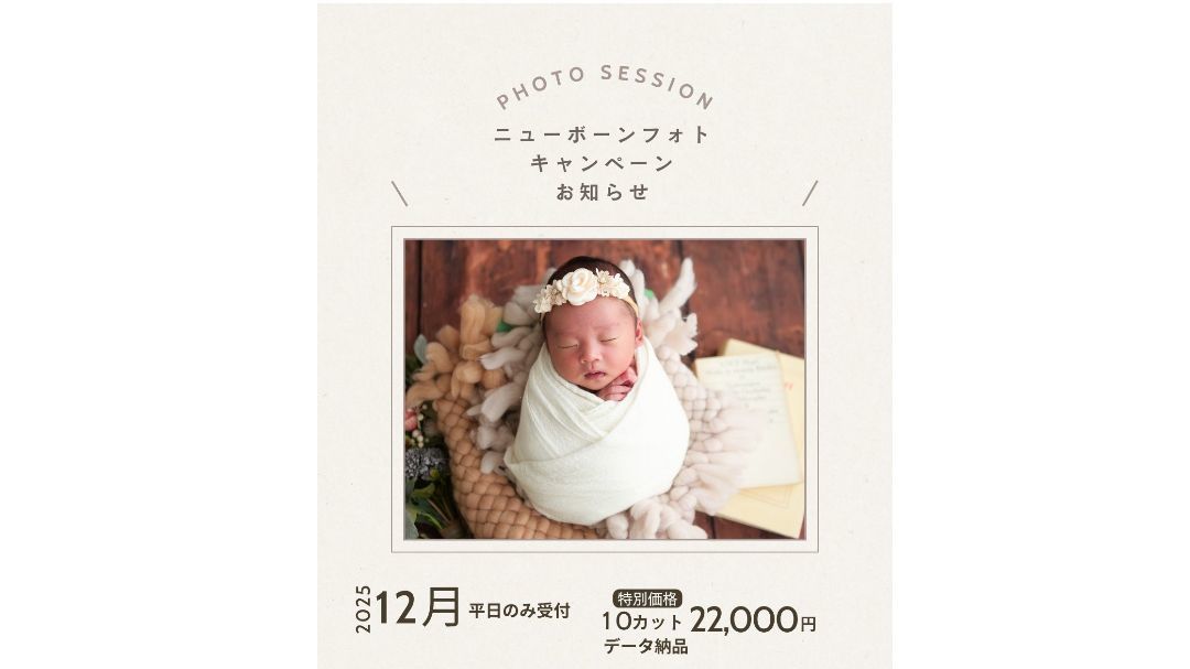- 2時間~3時間を予定してください。ニューボーンは眠っている所を撮影しますので、眠らせる時間もあります。撮影+眠らせる時間で2時間~3時間です。スムーズに撮影できると1時間30分ぐらいで終わる場合もあります。