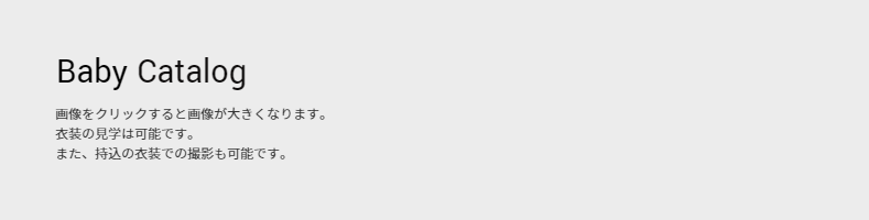 1歳男の子和装 001 ブルー羽織 品番:1B001W 002 黒と赤がカッコいい羽織 品番:1B002W 003 カワイイ柄の羽織 品番:1B003W 004 桃から生まれた日本一 品番:1B004W 005 まさかり担いだ金 品番:1B005W 006 横綱狛犬関 品番:1B006W 007 着やすい和風レッド 品番:1B007W 008 着やすい和風ブラック 品番:1B008W 1歳男の子カジュアル 009 チェックと赤シャツ 品番:1B001C 010 ヒゲボウタイ 品番:1B002C 011 トラッドカジュアル 品番:1B003C 1歳女の子和装 001 カワイイ着物リボン付 品番:1G001W 002 十二単風 品番:1G002W 003 カジュアル和装生成 品番:1G003W 004 カジュアル和装抹茶ミルク 品番:1G004W 1歳女の子洋装 005 羽付フェアリードレス 品番:1G001Y 1歳女の子カジュアル 006 ピンクカジュアル 品番:1G001C 007 ドットカジュアルドレス 品番:1G002C 008 キナリなカジュアルドレス 品番:1G003C ページトップへ