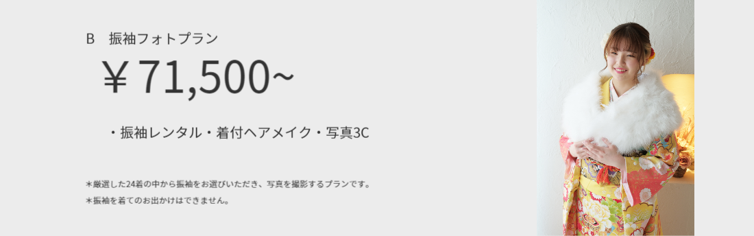 B振袖フォトプラン 振袖レンタルをし写真だけ残すプラン。写真3枚付き