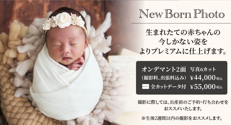 - 出産前にスタジオにご来店して、打ち合わせをさせていただきたいです。直接お話しする事で商品の説明などしたあと出産予定日を確認しながら撮影日を決定します。打合せが出来ない時は出産予定日+10日ぐらいでご予約ください。